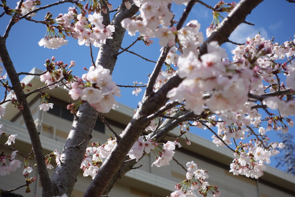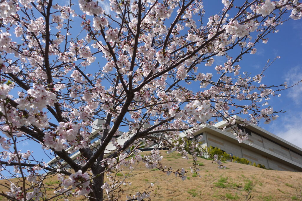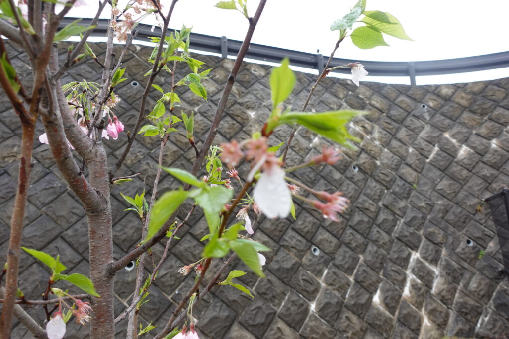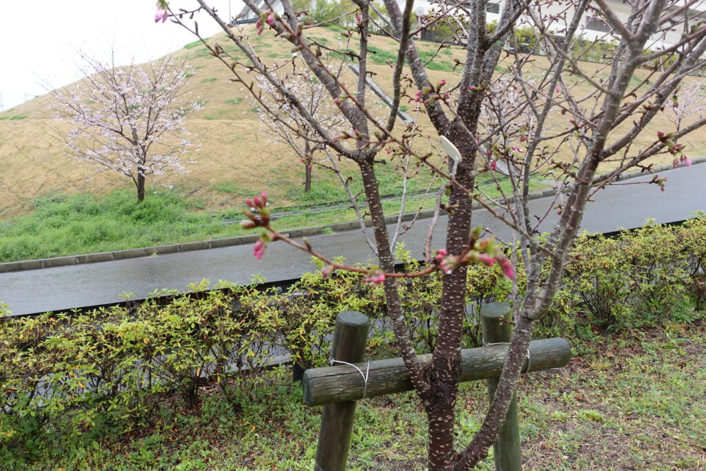 新環境クリーンセンターには、ソメイヨシノ、フジザクラ、ヤマザクラを植えています。昨年末には、新たにキクザクラも植えました。4月2日現在、美しく開花している様子がみられました。